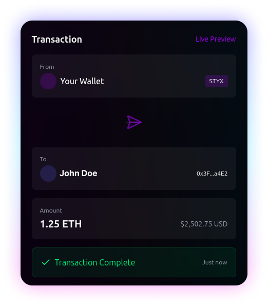 From basic transactions to advanced DeFi and NFTs, STYX evolves with your crypto journey.
