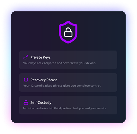 100% Self-Custody. No intermediaries, no exceptions—just absolute control over your crypto.